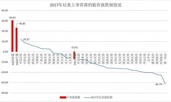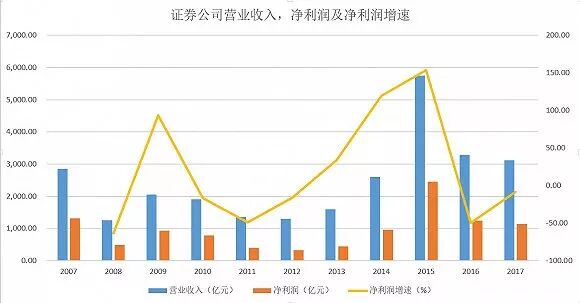 2017年表现不俗的券商自营业务,和二级市场的总体表现密切相关,这也就意味着其盈利模式存在着不可持续性和不可复制性,相当于是“靠天吃饭”。