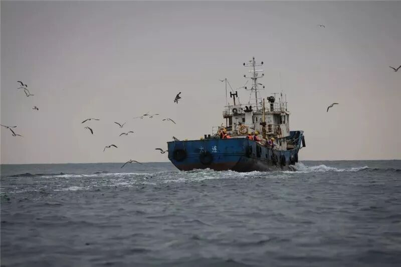 一艘渔船在獐子岛海域进行捕捞活动。图@视觉中国
