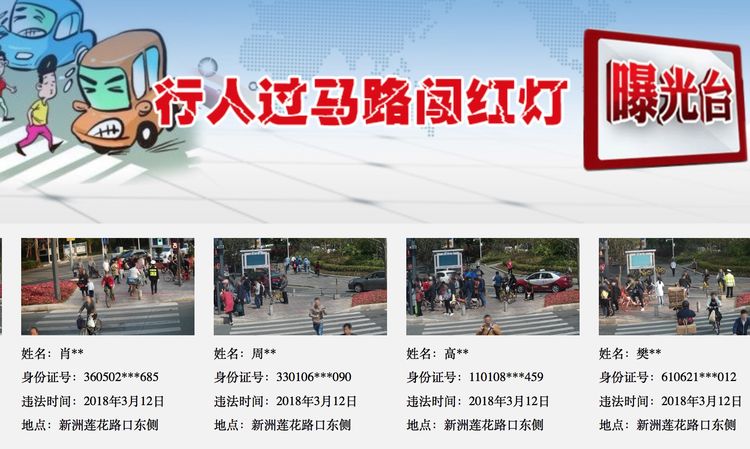 深圳交警通过将脸部识别技术和智能闯红灯取证系统结合,近日在政府门户网上线了行人闯红灯曝光台,网页中公示了闯红灯行人隐藏部分信息的姓名、身份证号、违法时间、地点及清晰地「现场照片」。