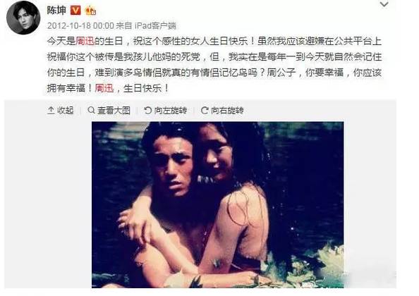 当然,他俩的友谊也确实是可以羡慕死人!陈坤每年风雨无阻的为迅哥儿送上生日祝福!