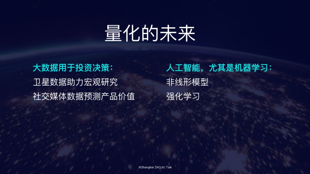 随着数据的增加、算法的成熟,我们有更好的技术去发现数据中的规律,去预测未来。我们有理由相信,算法在投资中的应用会更加的广泛和深入。