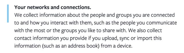 △  脸书隐私政策中写明将收集联系人信息 来源:脸书