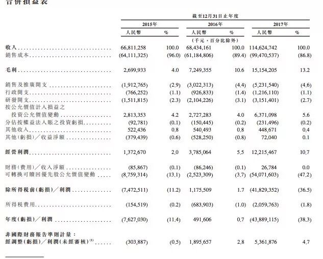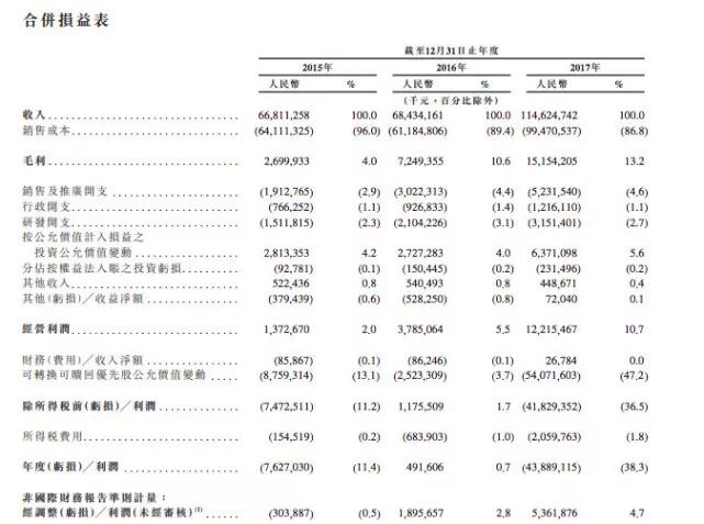 需要注意的是,增量并不一定增益。招股书显示,截至2017年12月31日,小米手机2017年平均售价881.3元,销量9141万部,贡献总收入约805.64亿元。相比销量的节节攀升,净利润则是持续亏损。依据招股书披露的数据,小米2015年亏损76.3亿元,2016年盈利4.9亿元,2017年再度亏损438.9亿元。