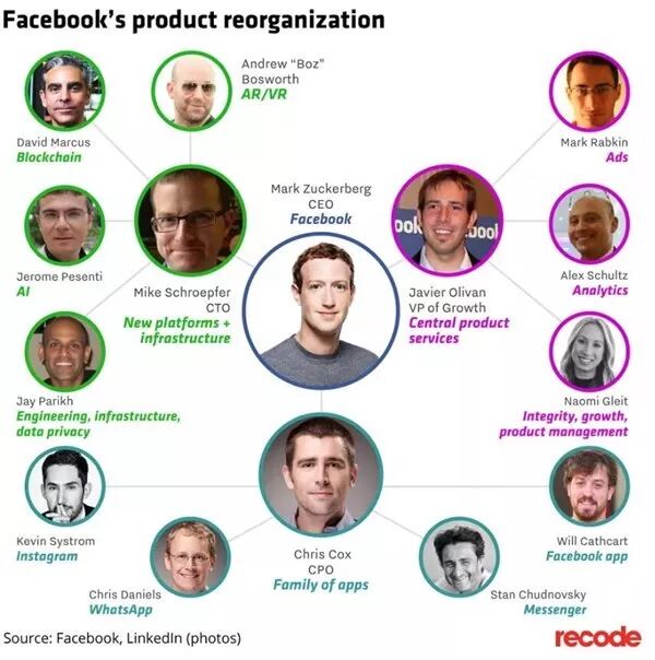 本周,社交巨头Facebook经历了15年来首次高层“大换血”,对包括Whatsapp、Facebook Messenger以及其他Facebook的核心产品的负责人均进行了更换调整,同时成立了新的区块链业务相关部门。
