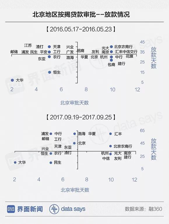 在“3·17新政”后,北京各银行放款周期普遍在35-40个工作日左右。2017年11月,受年底银行收款季和北京房贷政策紧收的影响,放款时间由以往的15-60天延长到60-180天不等。