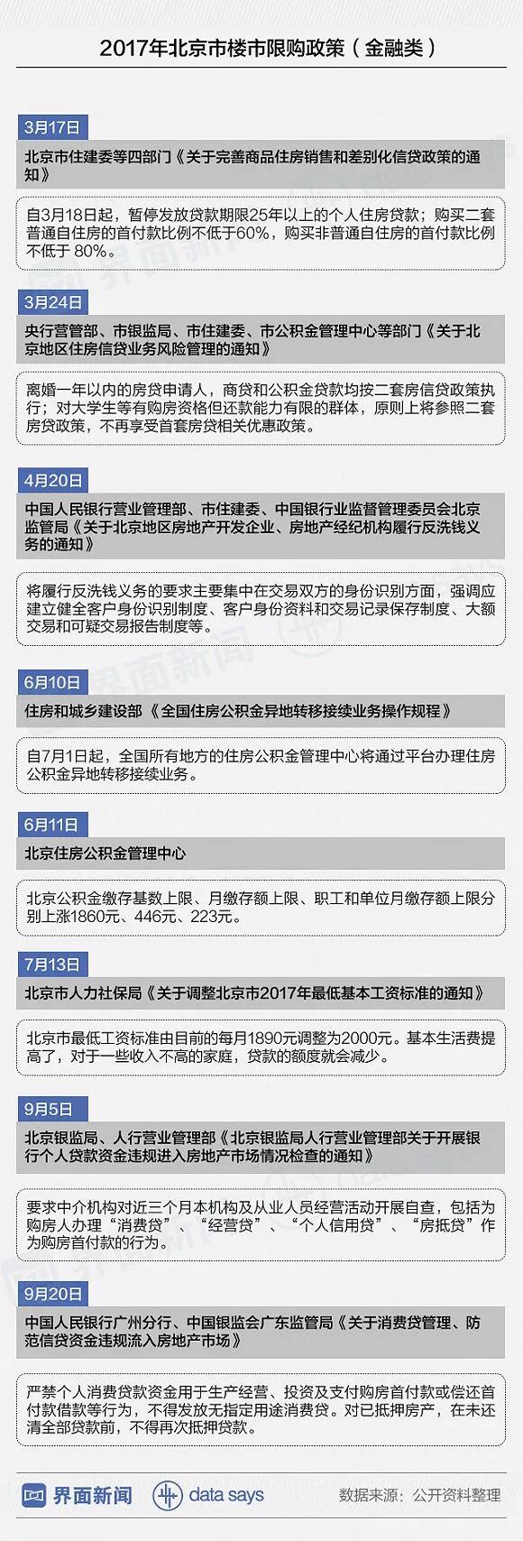 在提高首付比例和房贷利率等“常规操作”之外,北京还通过上调公积金缴存基数上限、提高最低工资标准、限制消费贷用途等间接方式进行了限贷。