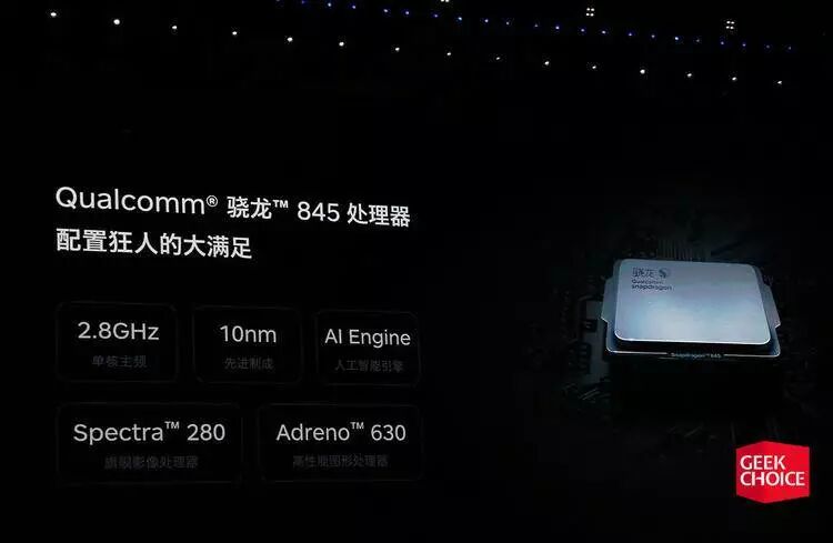 SoC 自然是高通的新一代旗舰芯片骁龙 845,这也坚果 R1 成为继小米 MIX 2S、黑鲨游戏手机后,第三款搭载骁龙 845 的国产手机。