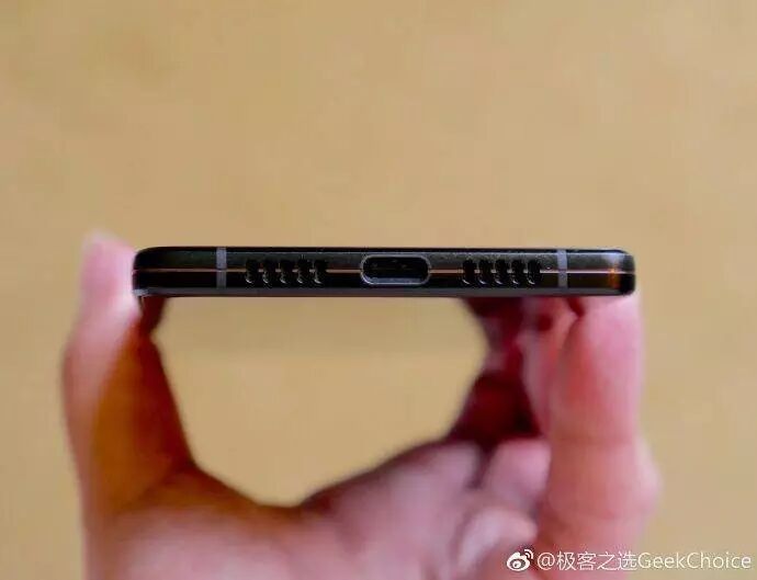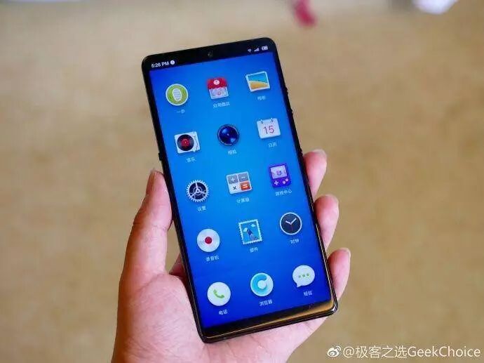 坚果 R1 的正面采用了类似 Essential Phone、夏普 S2 的「美人尖」设计,也就是在屏幕顶部的中间挖了一个圆形区域,用于在「额头」部分放进去前置摄像头,听筒收纳在屏幕上方(类似坚果 Pro 2)。