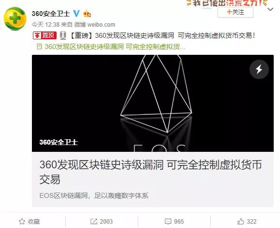 360安全负责人:EOS存在更多漏洞,但有漏洞的不止EOS