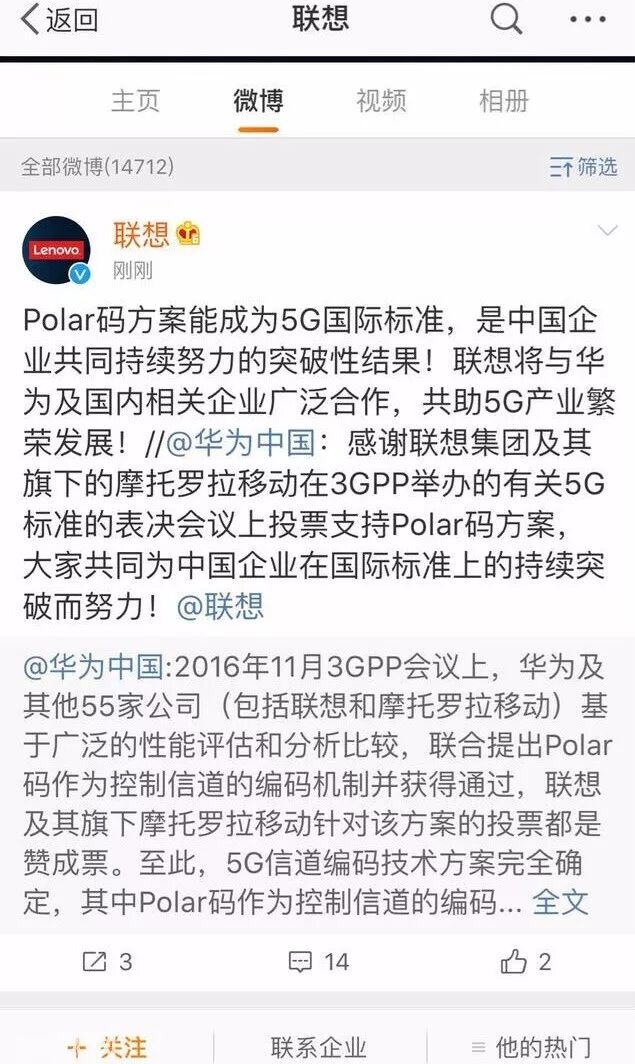就此事,5 月 11 日,联想发了一则语焉不详的声明,强调在投票中支持了华为Polar 码。