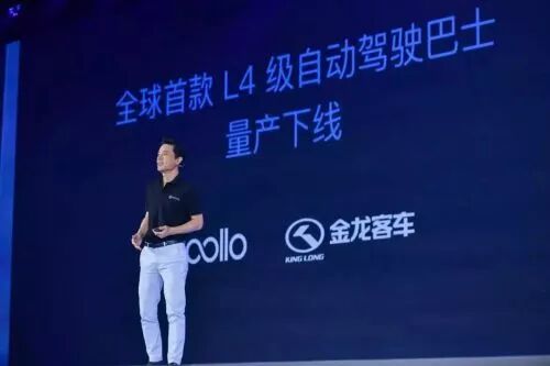 在铺垫一系列如“创新有风险”、 “造车跟造PPT不太一样”、“造车常有延迟交付”后,他宣布与金龙合作的小巴“阿波龙”已下线100台。