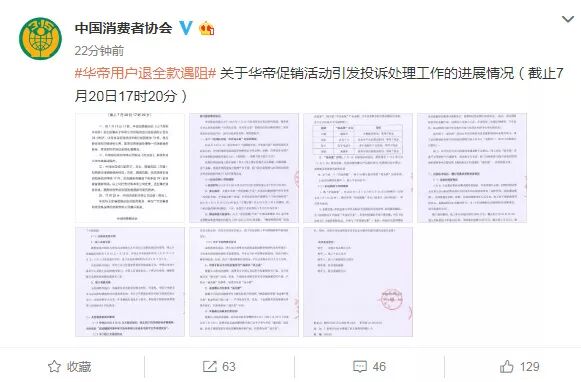 36氪讯,中国消费者协会昨日发布关于华帝促销活动引发投诉处理工作的进展情况:24小时内,中消协共收到涉及华帝公司的投诉73件,相关投诉材料已转华帝公司,要求该公司妥善处理。中消协已向华帝公司发出约谈函,约谈工作在准备中。中消协正在继续推进问题的解决,将与消费者和社会各界共同监督华帝公司履行承诺。