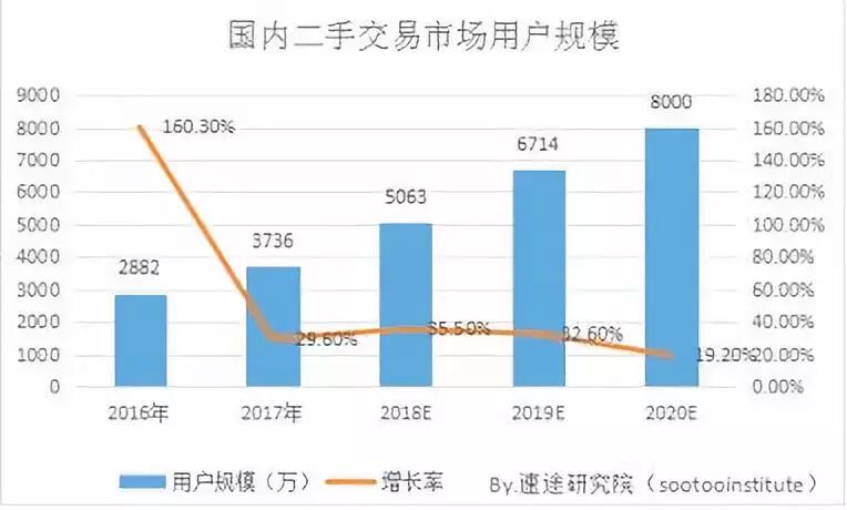 数据显示,截止到2017年底,国内二手交易市场用户规模接近4000万,预计2020年用户规模将达到8000万,这个潜在客群实在太过诱人。目前二手交易市场处于用户养成阶段,用户的使用习惯正处于快速的培养中。用户规模高速增长主要得益于消费观念的改变,闲置的物品既能换钱还能交朋友,让购买使用后环节的需求得以快速彰显。