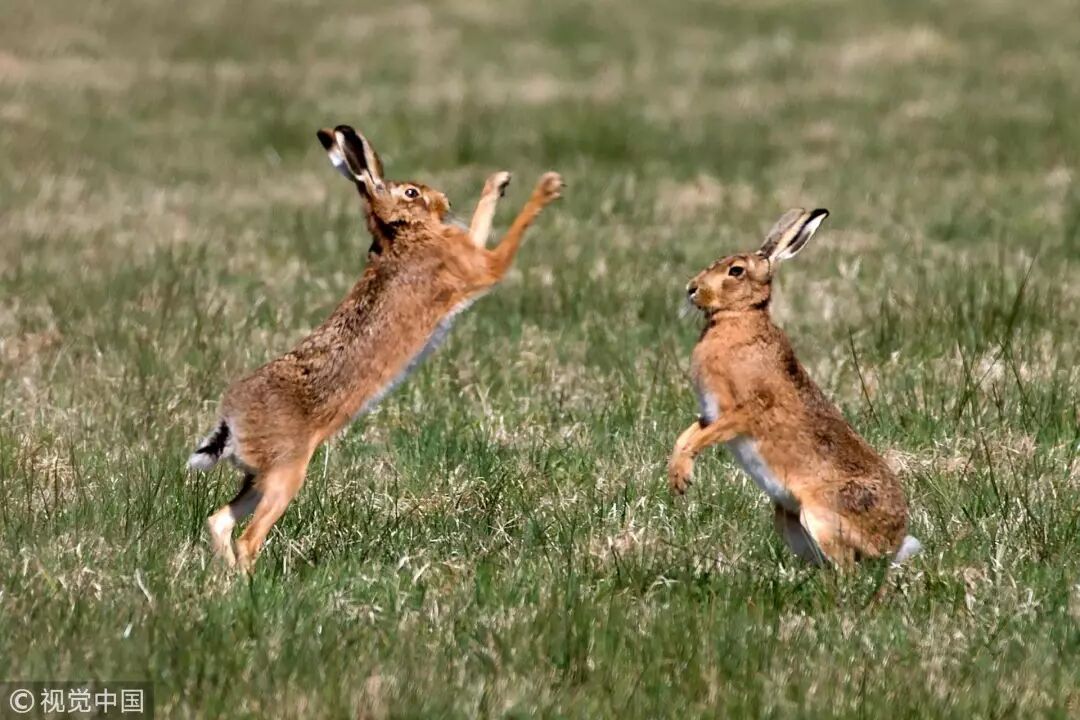 为争夺配偶而竞争的野兔,这种现象在自然界很常见 / 视觉中国