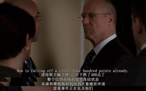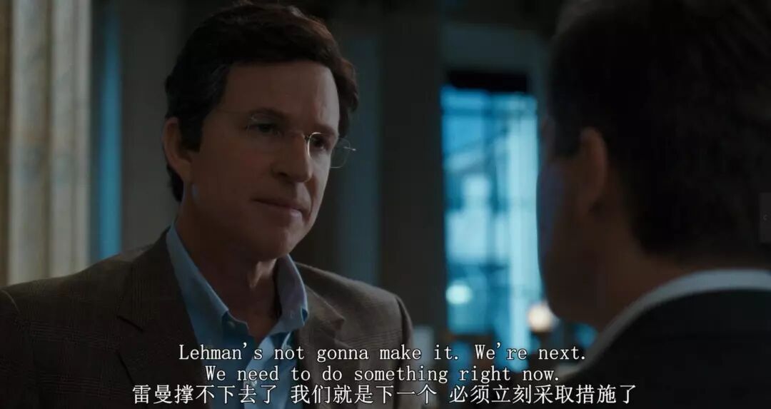 在用这些新闻镜头概括次贷危机的来源之后,电影映入了雷曼兄弟位于曼哈顿的总部,这栋大楼是从摩根斯坦利手上买来,线条刚硬,时间定格在2008年5月23日。