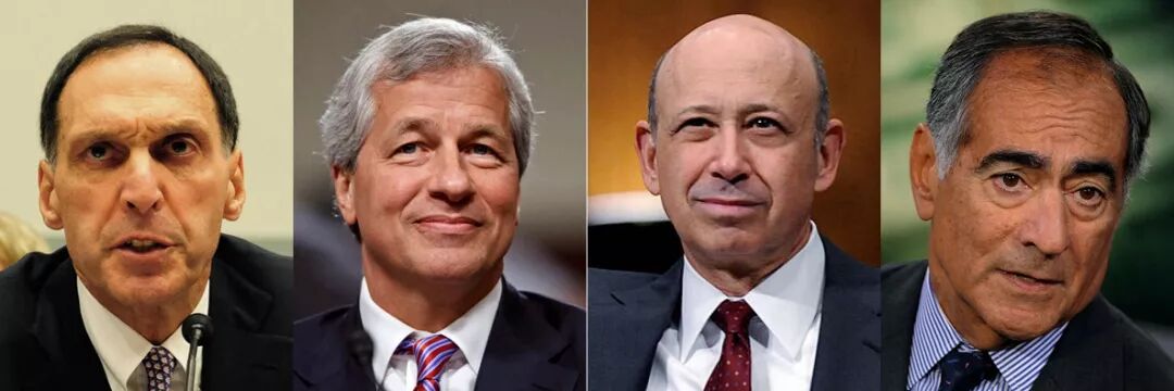 华尔街方面:也有四位主要人物,其中包括雷曼兄弟CEO富尔德(Richard Fuld Jr.),高盛首席执行官贝兰克梵(Lloyd Blankfein), 摩根大通CEO戴蒙(Jamie Dimon),摩根斯坦利CEO约翰麦克(John Mack) 。