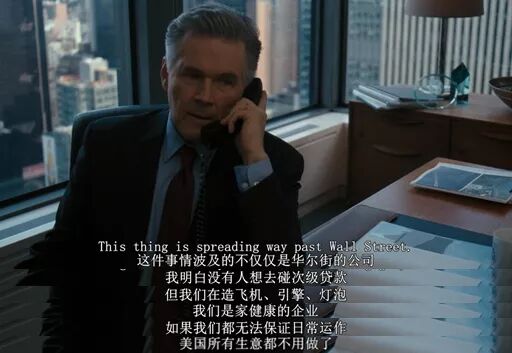 但恐吓牌和温情牌最后都没管用,法案没有通过。最后证明,没有投赞成票的,反而是保尔森和布什总统的同僚—共和党人居多。对此,电影里的保尔森一脸无语。