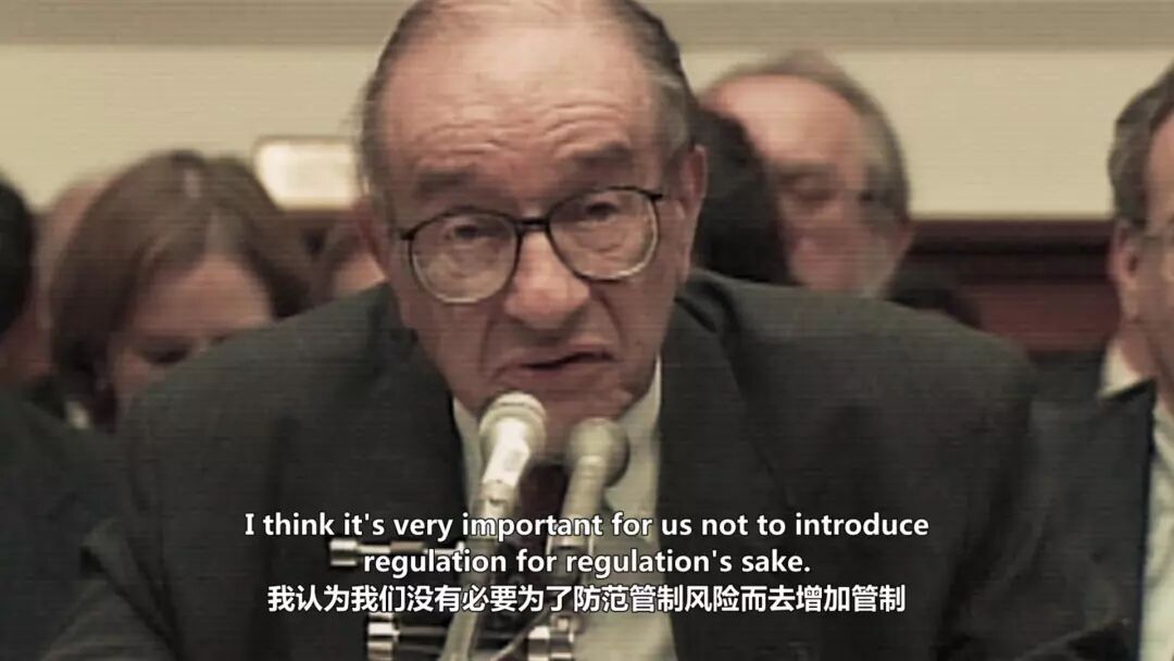 随后出场的是前任美联储主席格林斯潘,他的原话是:我认为我们没有必要为了单纯为了监管而监管。他在2001年互联网泡沫后的货币政策,以及对金融监管的消极态度,为次贷危机埋下了伏笔。