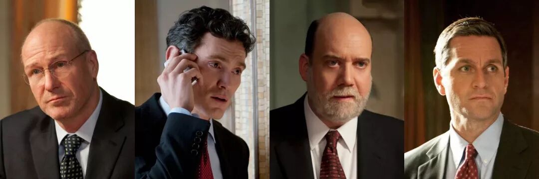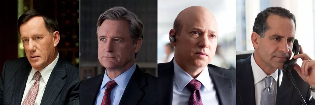 上述角色,在电影中分别由James Wood, Bill Pullman,Evan Handler和Tony Shaloub饰演。跟扮演华盛顿官员的同行一样,这些演员也都是老戏骨,把华尔街投资银行家们的傲慢、贪婪、恐慌和果敢都展现的淋漓尽致。