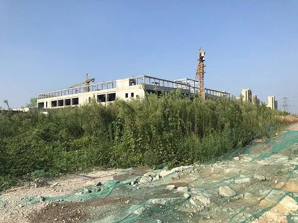 界面新闻记者走进施工地,大部分已沦为荒地,草已近一人深,只有远处一栋楼正在建设,可见有两个塔吊正在工作。