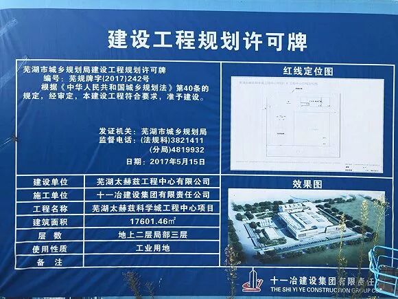 一公里后出现了工地的大门,门口的建设规划许可证显示,项目建设用地共计约2.3万平方米,建设许可日期为2017年5月,承建方为十一冶建设集团。记者在工地门口被拦下,一位建设方的负责人表示,这里做的是太赫兹芯片。