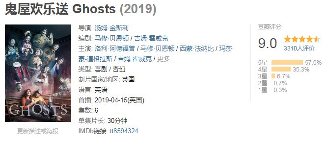 这部《鬼屋欢乐送》4月15日开播,豆瓣评分高达9.0分,IMDb7.5分。共6集,每集30分钟,目前更新了4集。