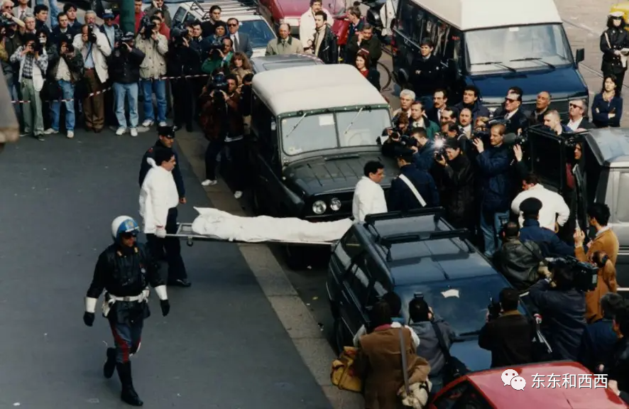 1995年3月27日,莫里吉奥从公寓步行到办公室上班,刚要上楼梯,凶手从背后连发三枪,一枪直接击中太阳穴,他当场毙命↓↓