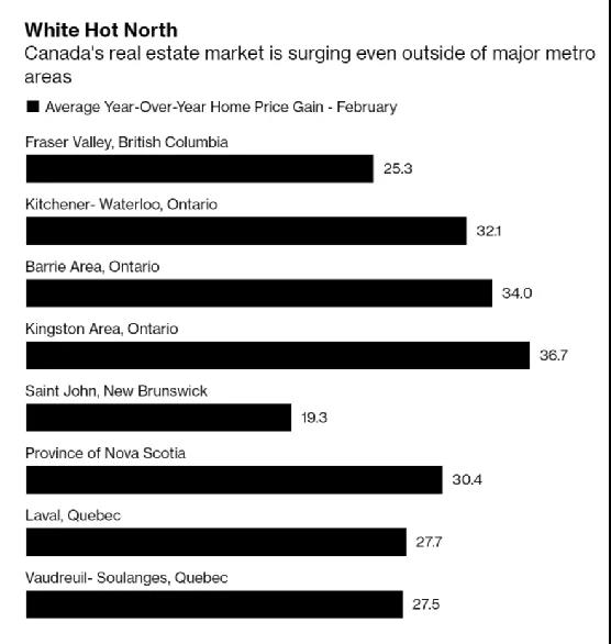 (加拿大地产年度涨幅最高的地区 图自彭博社)