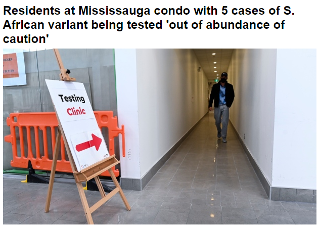今年2月,密西沙加一间公管公寓曾发现5例源自南非的新冠变异病毒,出于谨慎,皮尔区卫生官决定对该公寓的全体居民进行检测。