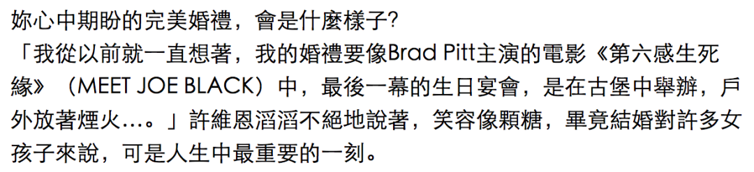 ▲ “甜心帮”是以吴佩慈为首的活跃于2012年左右的名媛团体,入会条件包括长相佳、长发、爱化浓妆,成员有吴佩慈、六月、吴亚馨、王滢、杨晴瑄、许路儿(许维恩的姐姐)、王以路等人,共同点是年龄都超过30岁,喜欢开派对,甚至一起练少女时代的舞蹈,她们的说话方式也很“讲究”,一定要以“宝贝”开头,“Love”结尾。有关其他台湾名媛团体“微风帮”“红豆帮”,大家可以戳这里回顾。相较之下,王家梁的知名度显然不够高,他是许维恩去年新开的经纪公司“维恩原创”签约的艺人,也是一众女艺人里独一位的男生:▲ 签约女生里的熟脸还有上过好多次《康熙来了》的茵茵(最右),只是而今的她在整容加P图下多少有点认不出来。美女老板和鲜肉帅哥,就算年龄相差6岁也难逃天雷勾动地火。他们以荧幕情侣的身份合体为某美容仪器品牌代言,在问答环节展现出的默契,让敏感的媒体嗅到了一点爱情的气息:果不其然,2月底《镜周刊》蹲守拍到了许维恩和王家梁多次同回爱巢的画面:新闻发出后,一别以往对于感情的扭捏遮掩态度,双方竟然爽快地承认了:▲ 王家梁最近在参加《全明星运动会第二季》(图右),正是福原爱老公江宏杰所在的红队队员。不得不说,这两位浓眉大眼,看上去还蛮有“夫妻相”的。据说原本的安排应该更提前一周,却因为台湾连日爆发的疫情耽搁了,王家梁更是因此放弃了号召一大帮亲友来聚集围观的计划,最后选在了风景秀丽的海边邀请女友来了顿烛光晚餐,然后在月色浪漫里下跪求婚:▲ 许维恩曾在当晚的ins story里晒出绚烂的海边夕阳。而媒体大众除了祝福外,也开始盘点起了这对俊男美女过去各自的情感经历。 今年39岁的许维恩感情之路并不算一帆风顺,经历过一段铭心刻骨痛失爱人、一次和富家子弟失败的联姻、两个纠葛多年的帅哥恋人,她此次决心和交往不过7、8个月的王家梁携手共度余生,多少有点出人意料。今天之所以要聊不怎么出名的她,除了因为她是集体回忆康熙综艺咖之外,最重要的原因还是她的恋爱极具代表意义,代表了这些年那些家境不错,条顺盘靓的贵圈大美女们在恋爱方式上的急速变化。 |