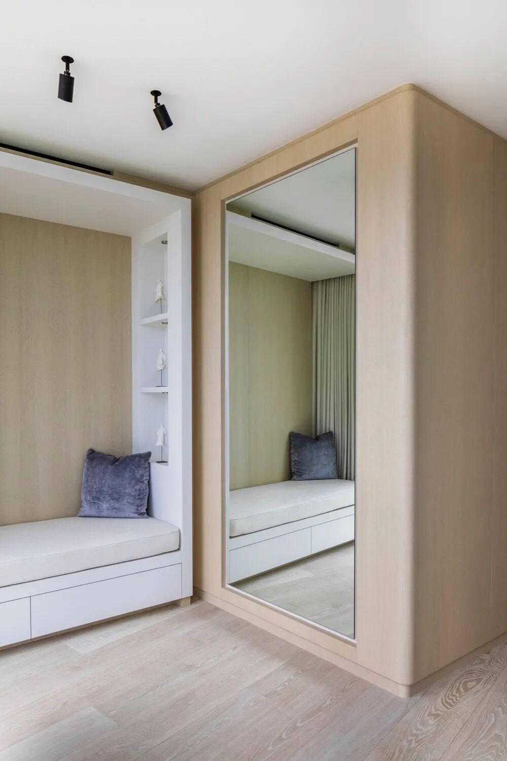超大的私人衣帽间,就像来到了一家专属奢侈品店,具有十足的仪式感,在这里,灯光的运用显得微妙十足。