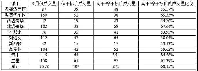 从这个列表中我们可以看出,过去一个月内,接近三分之二的独立屋成交价格都超出了标价,尤其以温哥华东区、北温哥华和素里这些相对低价的区域为甚。换句话来说,在5月份的独立屋成交量中,有三分之二以上的独立屋是被买家抢走的,要想买房,必须去“抢”!