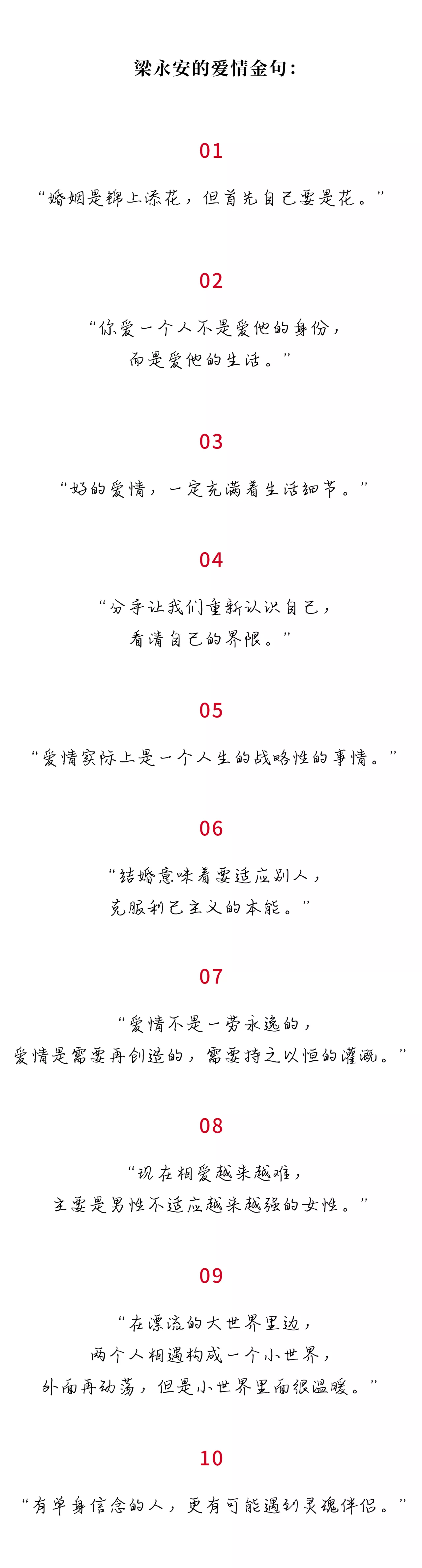 “爱情本身,其实就是两个人携手,在这个世界上体验热爱的生活。很简单,不需要那么多。”梁永安说。