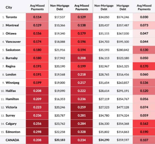 不过,如果按照平均按揭贷款余额,多伦多只能排在第三位,温哥华和卑诗素里(Surrey)房主的平均按揭贷款余额高于多伦多房主: