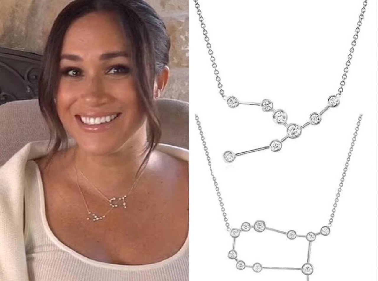 佩戴的项链也别有寓意,来自Logan Hollowell的星座项链,分别代表了儿子阿奇的金牛座,和女儿Lilibet的双子座。