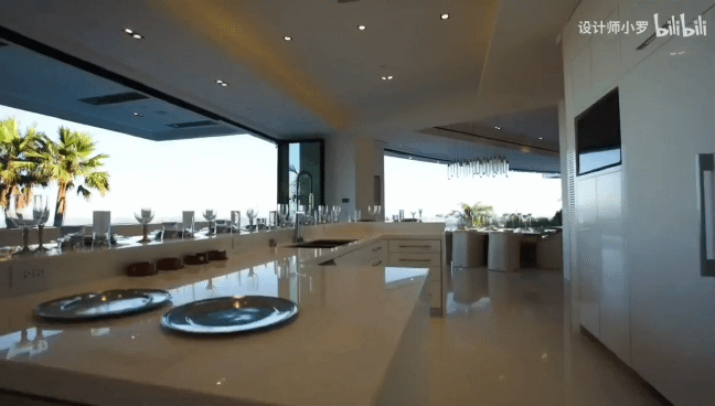 厨房与餐厅占据了更多的面积,大理石光滑的表面,晶莹剔透的玻璃杯与高档家具,可以说是为大型派对的量身定制。