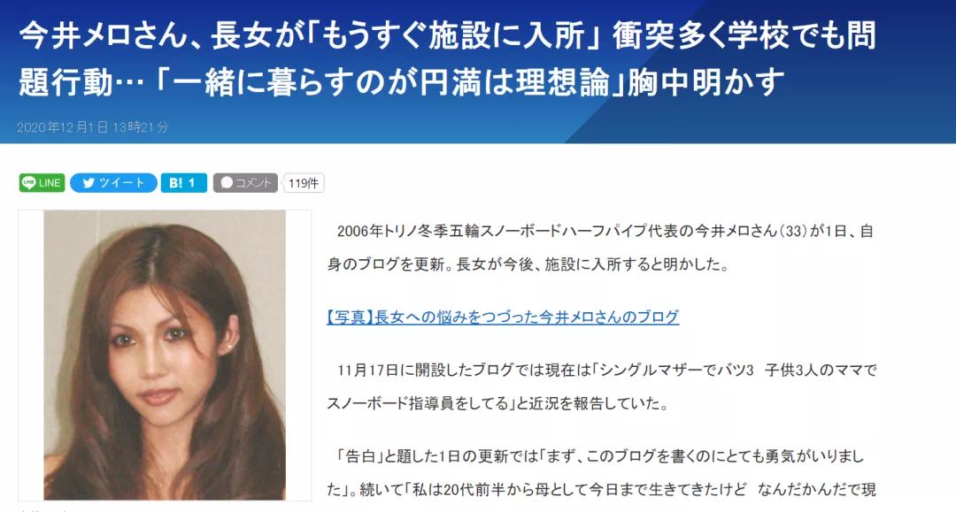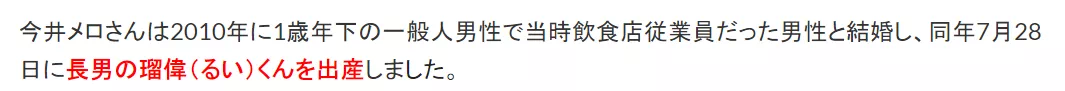 多年后,今井梦露坦言,当时自己每晚都笑着一遍遍割腕,因为割得太深,曾经三次被救护车拉走。无法重新面对滑雪事业,私生活又被无数双眼睛盯着,年轻的今井梦露无处可逃。和许多年轻的女孩一样,她幻想可以用婚姻和孩子来填充自己的人生。2010年,23岁的今井梦露生下儿子,并宣布自己已经结婚,丈夫是小自己一岁的素人。▲ 第一任丈夫是饭店店员,比今井梦露小一岁。生下孩子后,两人很快就离婚了。总之第二年,2011年,今井梦露宣布自己又怀孕了,是第二任丈夫今井裕一的孩子。