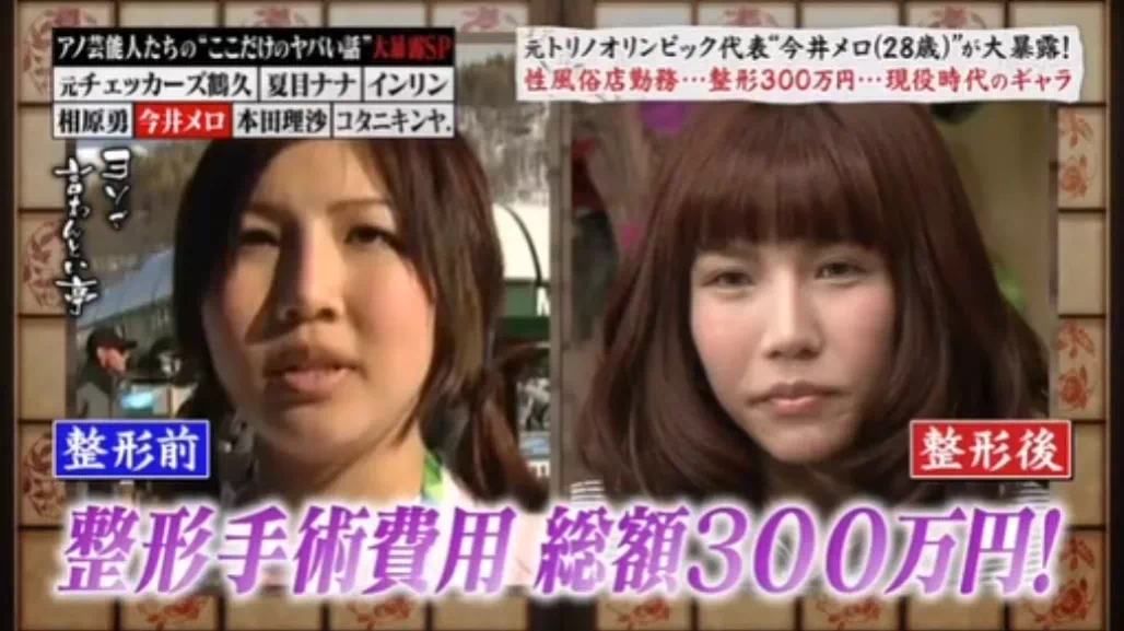 ▲ 割了双眼皮、垫高鼻子,外加削骨。一系列手术加起来一共花了300万日元。