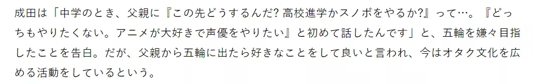 在奥运村里,成田绿梦还遇到了艺人香取慎吾,对方和他亲密合影。