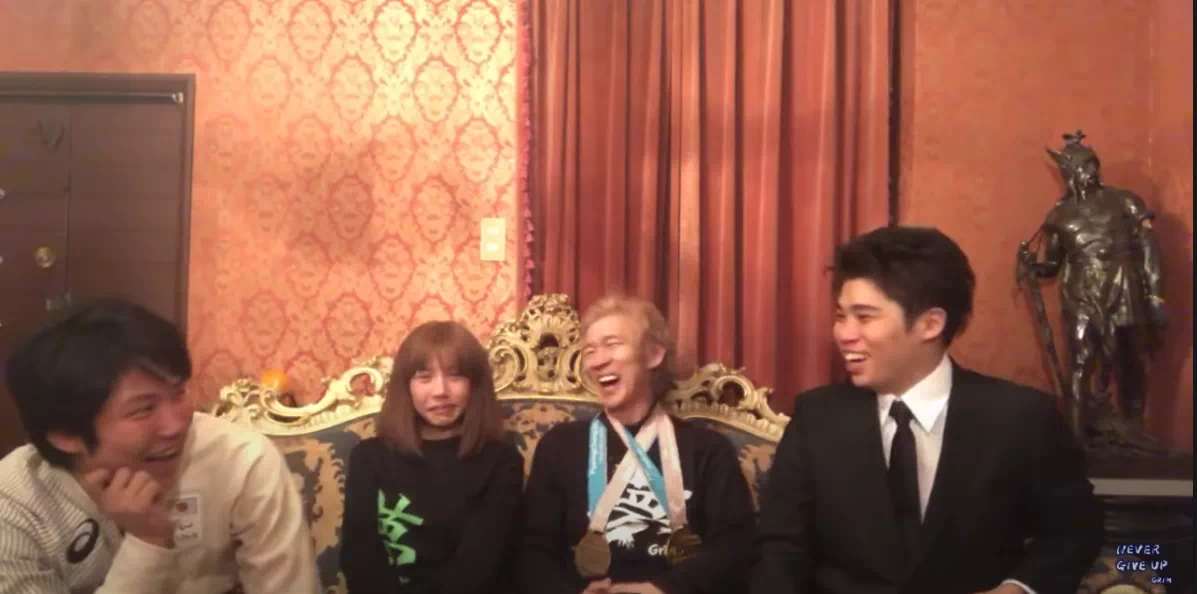 ▲ 从左到右分别是:今井梦露、弟弟成田绿梦、哥哥成田童梦。 弟弟成田绿梦在2013年19岁进行蹦床训练时,落地失误,造成左腿严重受伤,成了残疾人。结果,他硬是也没放弃滑雪,转为专业滑雪残障选手。