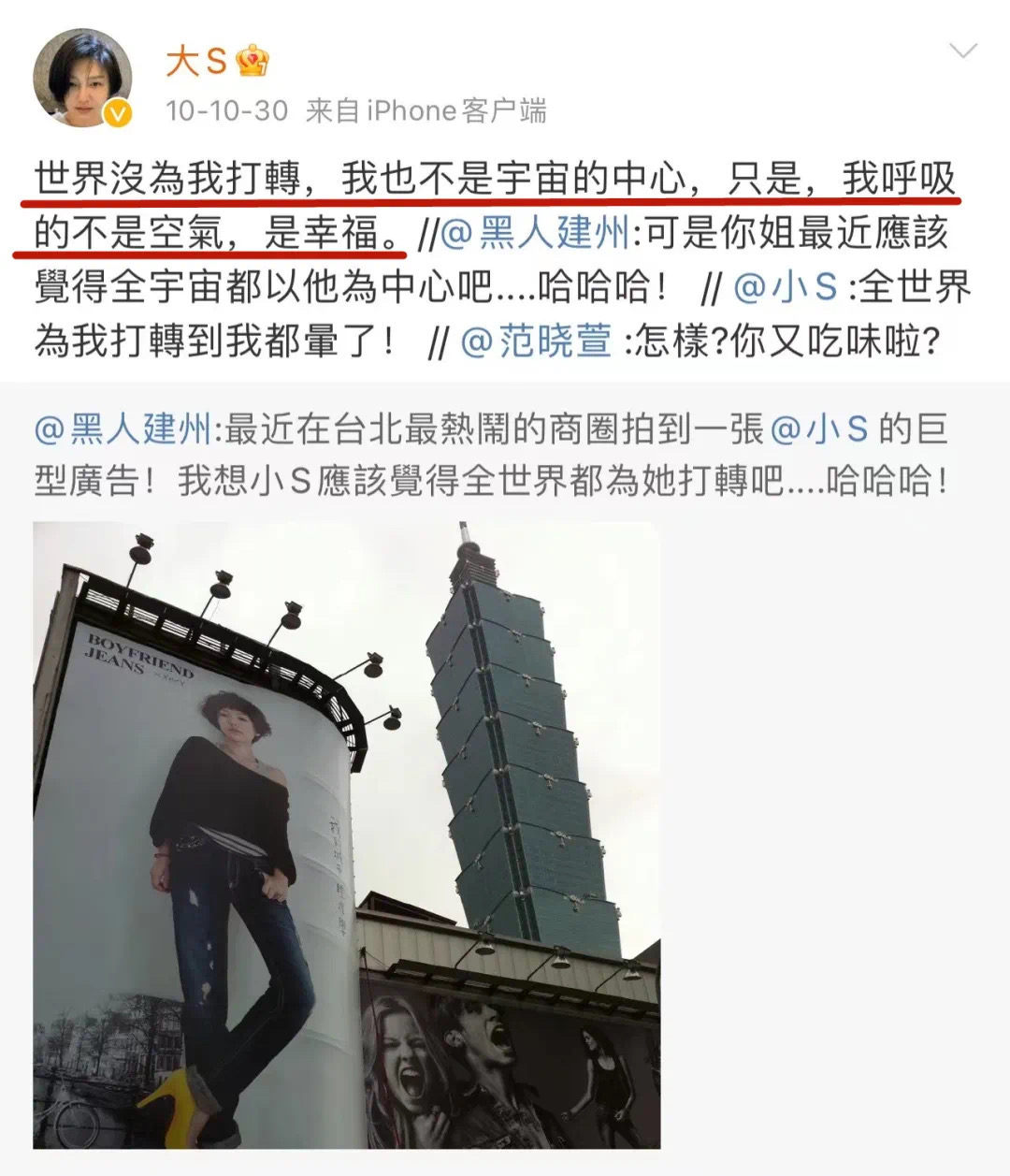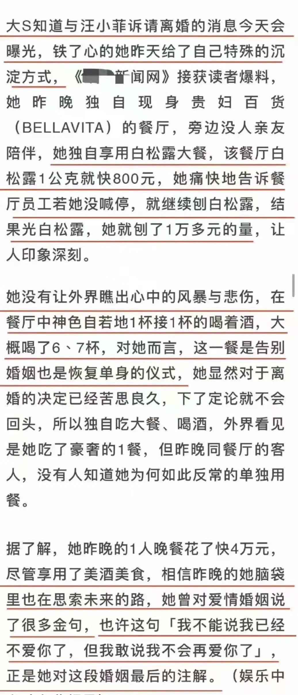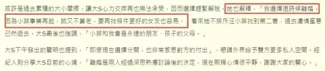天涯上有专业八卦网友一丝不苟透过微博的只言片语技术分析出大S早已对汪少下手,从七月开始,微博里就已透露忐忑不安夺人男友的心情。面对如此指控,汪少已然沉不住气了,急急反驳,而大S明显气定神闲、“人生的惊喜不断,感恩,珍惜,爱。”“我呼吸的不是空气,是幸福。” 她向来不惧人言,她爱上谁就向谁表白,谁能撼动她那颗女王之心,谁能劝止她这疯狂的御姐之情———坊间传闻汪少女友不断,可又怎么样呢?大S哪里顾得上,因为“能拥有爱情的人真美!” 比如她说过有一次汪小菲深夜回家很想吃水饺,可是家里没有,大S于是马上订机票,连夜从台北奔赴北京,为汪小菲煮自己亲手包的水饺。 还比如她搏命生孩子,不惜戒断素食习惯,更不惜住进ICU。初看是为了给汪小菲生孩子,细看,则是一个好强的女人必须要狠着心咬着牙达成自己的目标,不达目的誓不罢休。汪小菲也说“她一旦下了决心,十头牛都拉不回来”,“她性格很犟,不能将”。十年婚姻要分也是分得利落,姿态十分高蹈,一幅全为对方考虑的样子“小菲事业再起,帅又不算老,再找条件更好的女友也容易。”