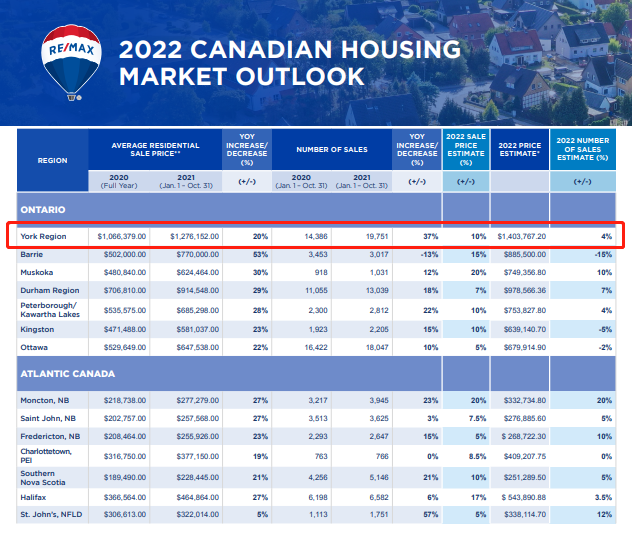 图源:Financial Post 与此同时,密西沙加将迎来多伦多地区最大的涨幅,为14%,而多伦多预计涨幅为10%。 而华人众多的约克区在2022年涨幅也与多伦多相同,价格增幅为10%,交易数量预计增长4%。