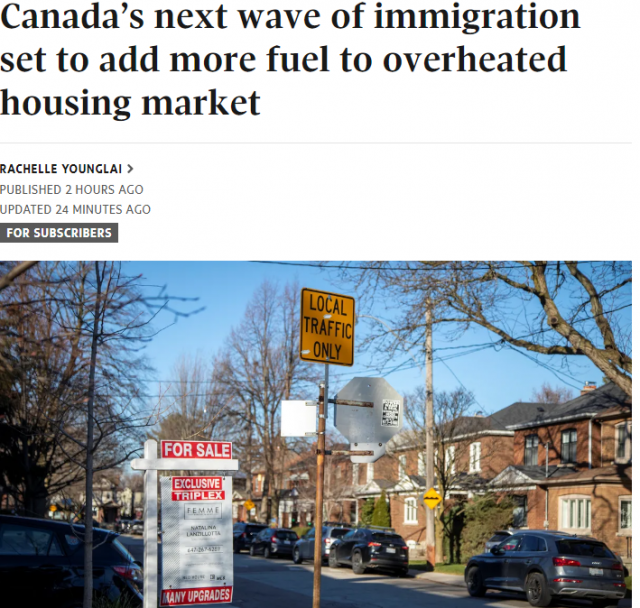 报道称,加拿大联邦政府将年度移民目标提高到历史最高水平,为新移民激增创造了条件。加拿大需要这些人来填补职位空缺,同时,这些新移民将立即增加主要就业中心和附近城市的住房需求。在全国房地产价格过去两年已经跃升40%后,这将加剧住房市场的竞争。