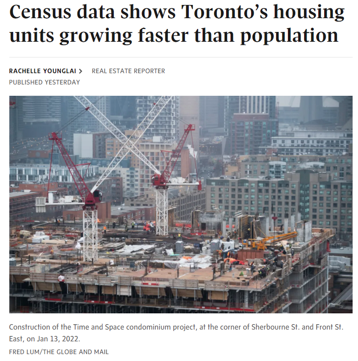 The number of private dwellings in the Toronto area rose by 7 per cent, to 2,394,205, between 2016 and 2021. Meanwhile, the area’s population grew by 4.6 per cent, to 6,202,225 residents, according to the census figures, which were released on Wednesday.