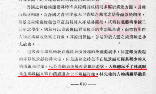 “凡参观过美展西画部的游客,大概总忘不了林风眠先生那几幅人物和蔡威廉女士的几幅肖像。林先生的人物构图早被公认为东亚新艺术之绝技,可无须再赘述了,但是蔡女士那几幅肖像却是一鸣惊人。”