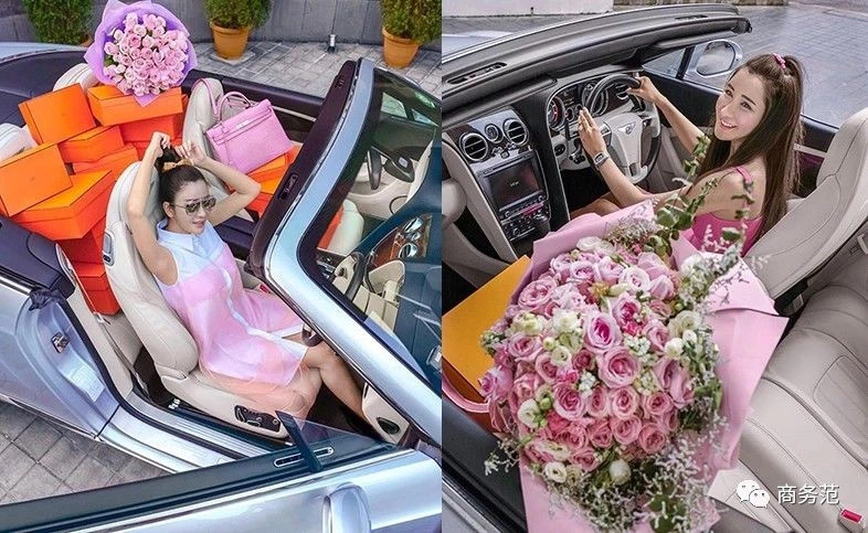 Jamie Chua最爱她这辆宾利敞篷跑车,晒的方式也很有自己的Style——被鲜花和爱马仕布置之后才愿意开出门(摆拍)。