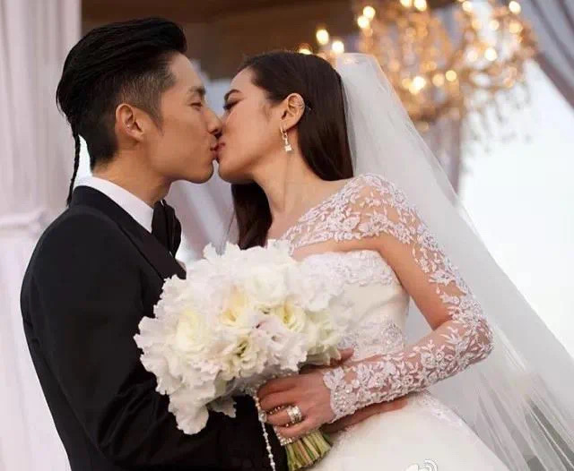 婚礼当天,林慧俐穿了一件Vera Wang的婚纱,戒指来自Graff的经典Laurence Graff Signature系列。