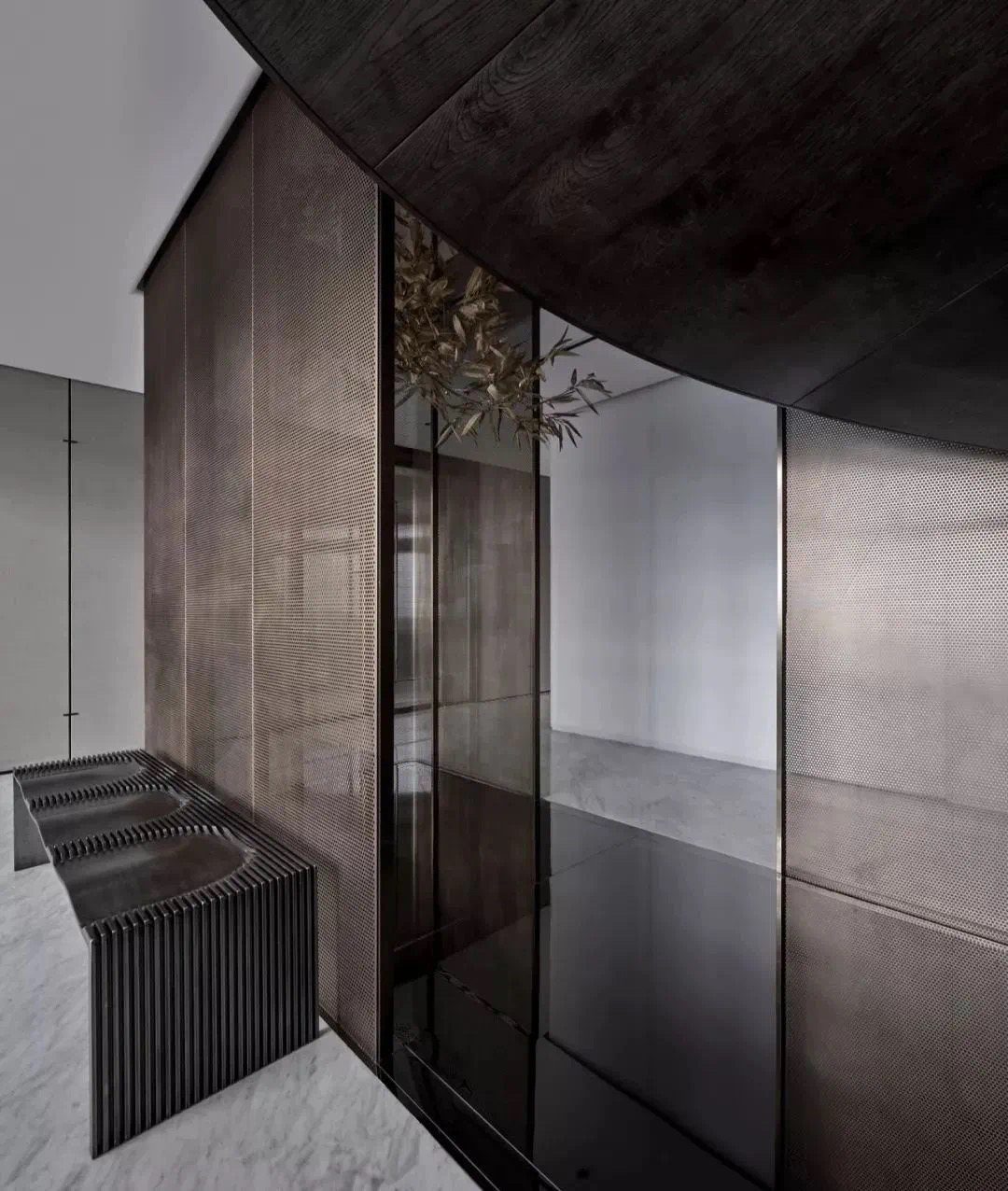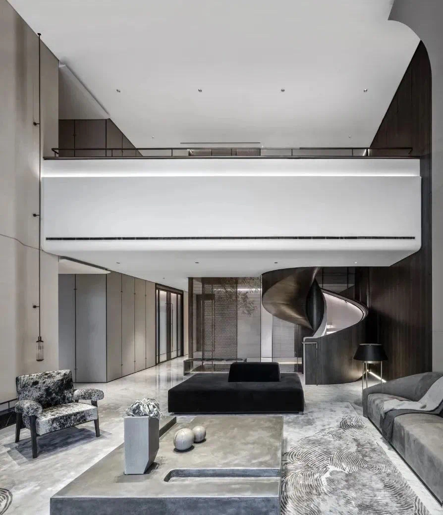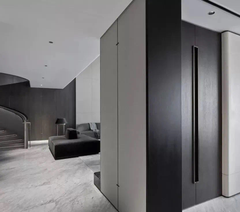 整座豪宅运用大量黑白灰等暗色系,营造出贵族般的高贵冷艳,深色与浅色的交错,以强烈的视觉对比,展现出生活的本质。