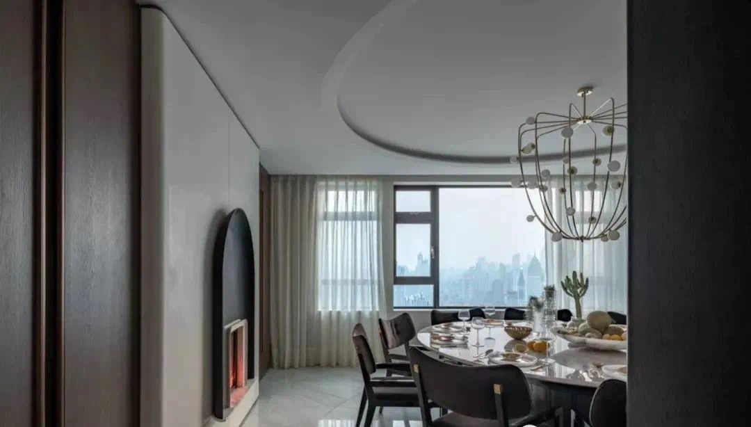 餐厅以张扬的姿态表达出对生活的热爱,枝形吊灯肆意伸展,烘托起餐厅氛围,一侧的壁炉燃烧着熊熊火焰,以绝对的热情姿态招待宴会上的嘉宾。