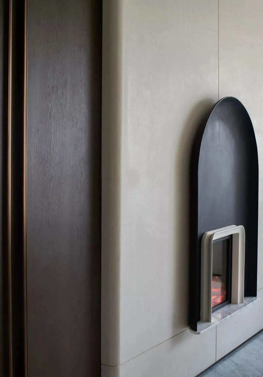 墙壁角落处设有壁炉,跳动的火光为冰冷的空间注入适量的温度,举手投足间,投射在墙壁上的明暗光线成了动人的音律,悄悄抚平人们烦躁的内心。